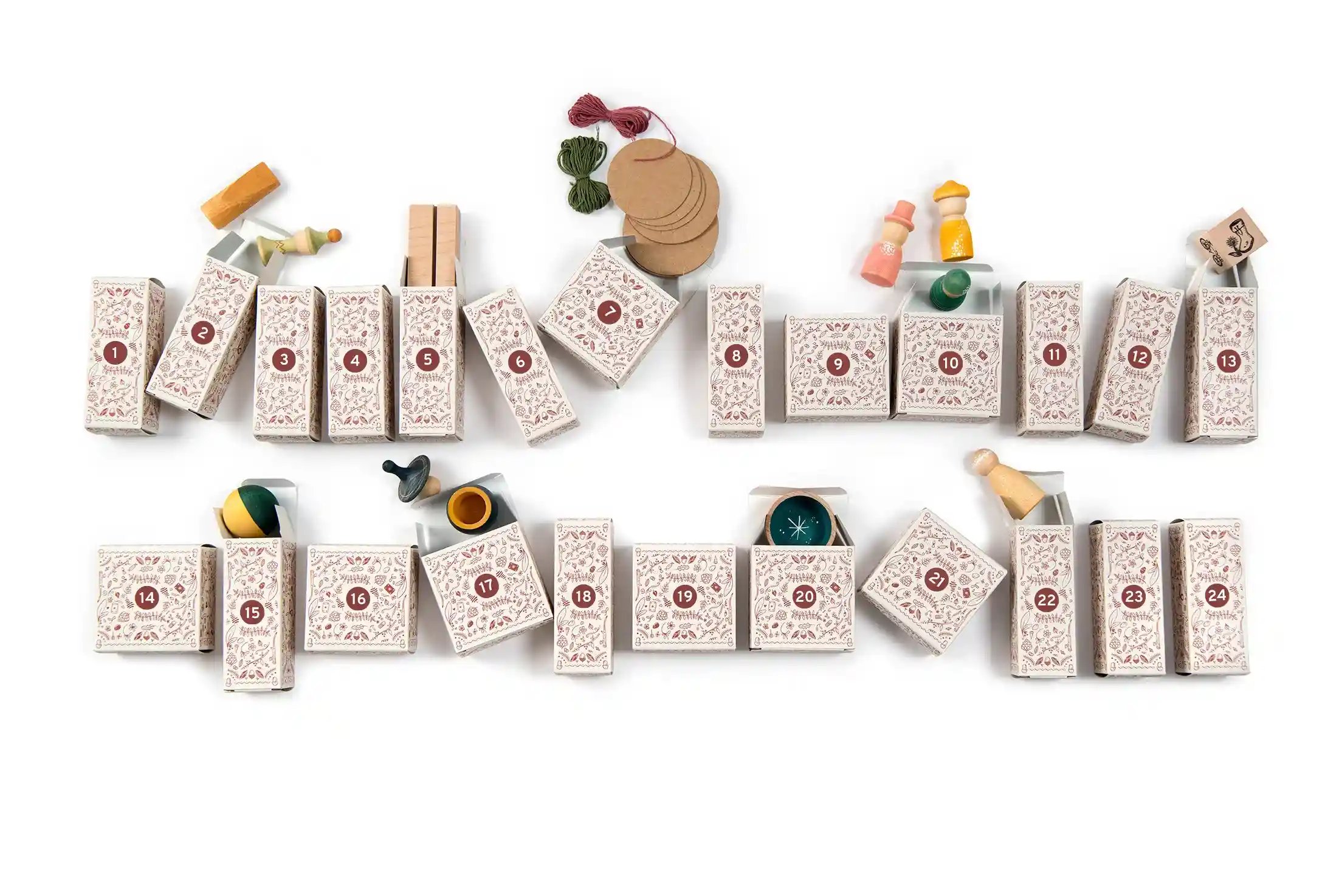 Our first advent calendar set, made of 24 reusable boxes containing different limited-edition surprises that link back